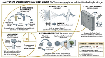 Wie ist es überhaupt möglich, dass ein mentaler Zustand (eine Prophezeiung) die äußere Realität formt? Die Basis hierfür liefert der Sozialkonstruktivismus. Geld, Staaten, Grenzen und Marktwerte existieren physisch nicht in der Natur – sie existieren nur, weil wir kollektiv daran glauben.